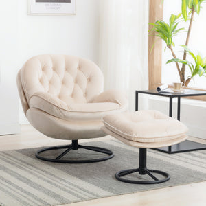 Accent TV Chair Living Room Sofa with Ottoman, Beige